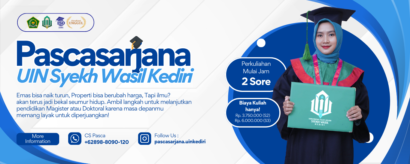 Kami berkomitmen untuk mencetak generasi cendekia yang unggul, berintegritas, dan siap menghadapi tantangan global. Dengan lingkungan akademik yang kondusif, dosen berkualitas, serta jaringan luas, Pascasarjana UIN Syekh Wasil Kediri hadir sebagai rumah ilmu untuk perjalanan akademik dan spiritual Anda.